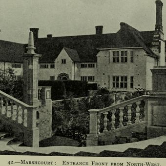 Marshcourt est une demeure résidentielle spacieuse avec un plan en forme de E construite en blocs de calcaire clunch, avec des détails en pierre de Portland et briques rouges. Les sept rangées larges de baies définissent les façades, tandis que les jardins incluent des cadrans solaires et des pergolas qui prolongent l'espace de vie extérieur.