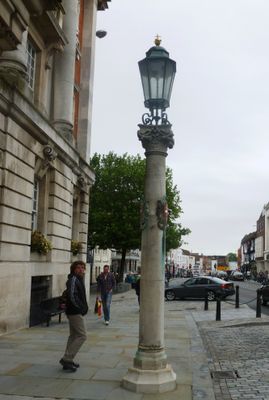 Column And Street Light, Right Of Entrance To Town Hall, architectural structure in Colchester, Essex, England, UK