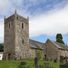 Parish War Memorial at St Dogfan's Church with surrounding railed enclosure.