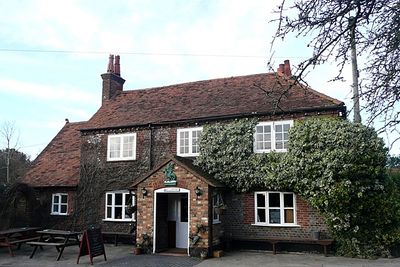 The Green Dragon est un pub historique à Flaunden avec des murs en brique rouge, un toit en tuiles rouges et une structure traditionnelle à colombages. Le bâtiment combine des éléments du début du 17e siècle avec des ajouts du 19e siècle qui ont été préservés.