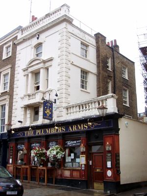 Le Plumbers Arms est un pub classé datant de l'époque victorienne situé à Belgravia avec deux etages et des details historiques. Le batiment presente des boiseries sombres, des fenetres traditionnelles et dispose d'un jardin a biere a l'arriere.