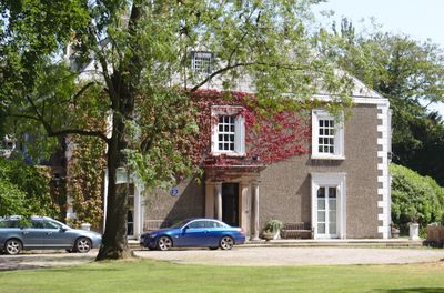 Poulton Hall est une demeure seigneuriale dans le Wirral avec des murs en brique recouverte de gravillons et des détails en pierre, dominés par un portique central de style toscan. Le bâtiment de deux étages comporte des fenêtres à guillotine et des portes vitrées qui définissent son architecture.