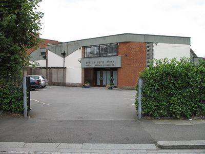 Le bâtiment de la synagogue au 101 Fallow Court Avenue présente une architecture moderne conçue pour les services religieux et les rassemblements.