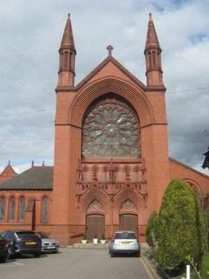 Our Lady and the Apostles Church, Stockport, Église catholique néogothique à Edgeley, Stockport, Angleterre.