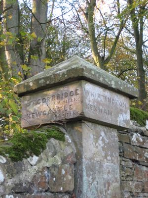 Milepost Pier 20 Yards West Of Great Whittington Road End, milestone in Matfen, Northumberland, UK