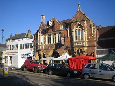 Le bâtiment municipal victorien se dresse sur High Street avec des éléments architecturaux néogothiques, une horloge en saillie et une disposition sur deux étages.