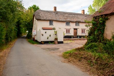 Hitts Farmhouse Including Barn Adjoining To North East, thatched farmhouse in Whimple, East Devon, Devon, UK
