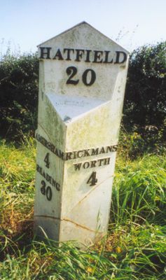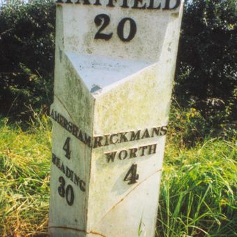 Milepost Approximately 30 Metres South Of Chenies Village, milestone in Chenies, Chiltern, Buckinghamshire, UK