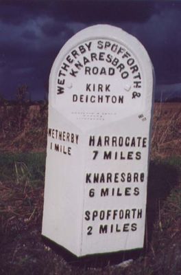 Milestone, N of Wetherby at fork for A1 and Knaresborough