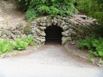 Grotto On North Side Of Reservoir, grotto in Lindrick with Studley Royal and Fountains, Harrogate, North Yorkshire, UK