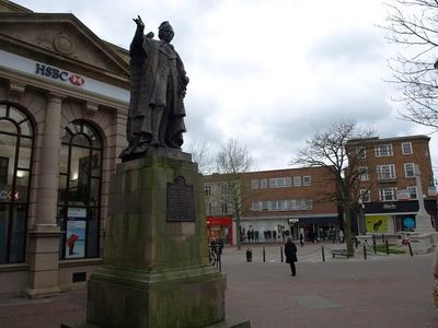 Statue of Benjamin Disraeli, statue in Aylesbury, Aylesbury Vale, Buckinghamshire, UK