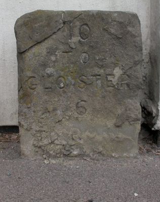 Milestone Against Garden Wall Of Hopebrook, milestone in Longhope, Forest of Dean, Gloucestershire, UK