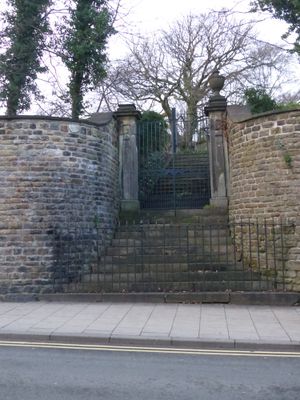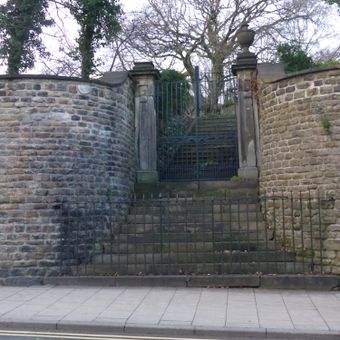 Gate piers, steps and wall opposite junction with Dallas Road, Grade II listed gateposts and steps in Lancaster, Lancashire, UK