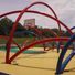 Les arches en acier tracent les trajectoires mathématiques des ballons qui rebondissent, créant un terrain fonctionnel qui sert également d'installation artistique.