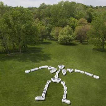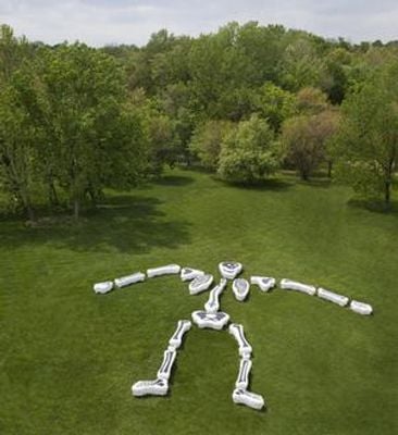 Funky Bones est une installation artistique composée de vingt bancs blancs et noirs disposés pour former un squelette géant qui s'étend sur la prairie centrale du parc. Les bancs sont construits en fibre de verre et contreplaqué, organisés de sorte que de près ils fonctionnent comme des sièges individuels, mais de loin leur disposition révèle une structure osseuse complète.