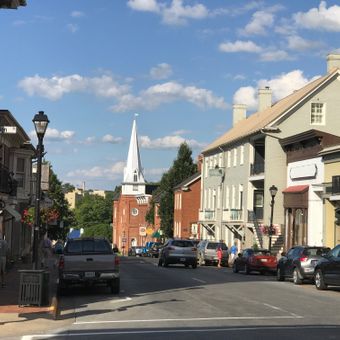 Le District Historique de Lexington présente des bâtiments aux éléments grecs le long des rues bordées par l'ancienne ligne de chemin de fer.