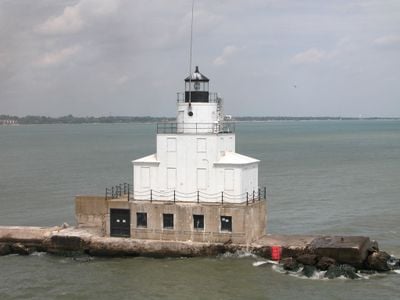 Le phare en acier s'élève à 12 mètres au-dessus du lac Michigan, marquant l'entrée du port de Manitowoc avec sa lumière blanche.