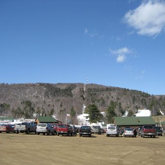 Deux tables de pique-nique près du sommet offrent des vues sur le lac Winnisquam et Laconia, entourées de myrtilles sauvages.