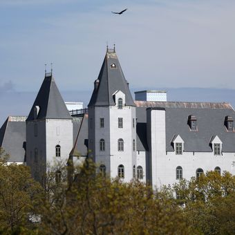 Les murs extérieurs mesurent environ 30 centimètres d'épaisseur et contiennent des fibres d'acier conçues pour protéger le bâtiment contre les tremblements de terre, les tornades et les incendies. La propriété se trouve au sommet d'une colline et est visible depuis la route, mais l'accès n'est pas autorisé.