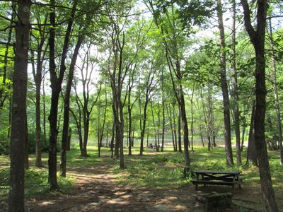 L'étang Pearl Hill Brook permet la baignade tandis que les pins créent des zones d'ombre naturelle dans les aires de camping.