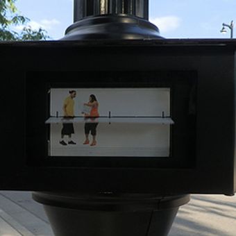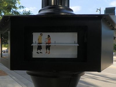 Chaque kiosque intègre trois unités mobiles utilisant une technologie d'affichage ferroviaire pour présenter 60 images numériques en séquence.