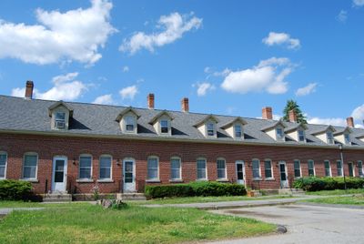 La section résidentielle comprend six immeubles en briques de huit appartements chacun, rénovés en 1984 pour créer des logements abordables.