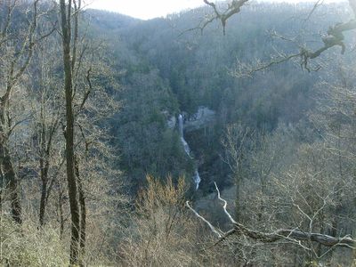 Le paysage s'est forme au cours de la longue histoire geologique des Blue Ridge Mountains, qui ont modele la region pendant des millions d'annees. L'escarpement ou la cascade tombe resulte de l'erosion naturelle et du mouvement des roches qui continue de faconner le terrain aujourd'hui.
