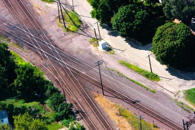 Le parc ferroviaire dispose d'une plateforme surélevée avec un kiosque couvert permettant d'observer les trains au croisement diamant double.