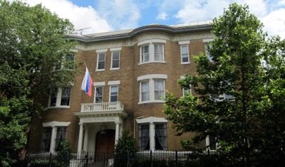 Le Centre Culturel Russe occupe un ancien bâtiment résidentiel de trois étages aux caractéristiques architecturales classiques au 1825 Phelps Place NW.
