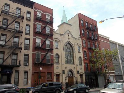 La Cathédrale Saints Kiril & Metodij est un lieu de culte à Hell's Kitchen, originellement converti d'un bâtiment industriel. La structure présente une façade en brique jaune et des dimensions modestes qui s'intègrent discrètement aux immeubles résidentiels environnants.