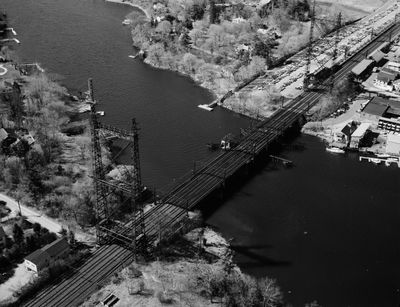 Le pont ferroviaire de la rivière Saugatuck présente un mécanisme de levage rotatif Scherzer à une seule feuille transportant les voies de Metro-North.