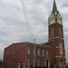 L'édifice en briques rouges situé au 1301-1305 West Market Street présente une structure de trois étages avec un clocher et un presbytère adjacent.