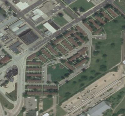 Lors d'une renovation dans les annees 1990, le Corps des Marines americain et les Seabees de la Marine ont participe a la demolition de 15 immeubles pour ameliorer les conditions communautaires. Ce partenariat inhabituel entre personnel militaire et reamenagement de logements montre comment differentes institutions ont contribue a la renovation urbaine.