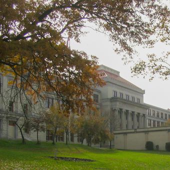 Taylor Allderdice High School est un établissement d'enseignement secondaire public dans le quartier de Squirrel Hill à Pittsburgh, occupant un campus avec des éléments de conception néoclassiques. Les façades en brique sont complétées par des détails en pierre et des ornements sculptés qui encadrent l'entrée principale et les étages supérieurs.