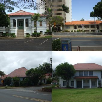 Les bâtiments du district illustrent les influences architecturales qui ont façonné les structures gouvernementales hawaïennes au début du vingtième siècle.