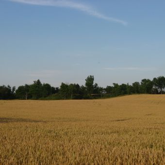 Le Zimmerman Kame se présente comme une colline circulaire de 20 pieds de hauteur, entourée de terres agricoles et recouverte d'arbres.