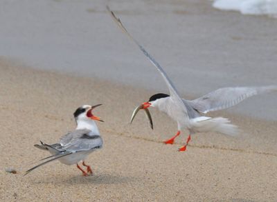 Les phoques gris et communs se rassemblent sur le rivage, tandis que les sternes et les pluviers siffleurs nichent dans l'habitat côtier protégé.