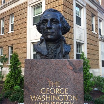 Cinq bustes en bronze de George Washington par Avard Fairbanks sont installés aux différentes intersections du campus de l'Université George Washington.