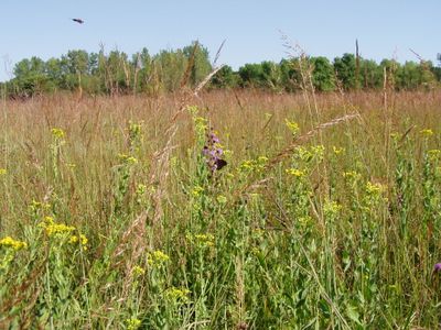 Une formation rocheuse remarquable de gneiss se trouve sur la propriété, un grand rocher laissé pendant l'ère glaciaire. Une tour d'observation offre des vues sur les différents habitats, des forêts aux prairies ouvertes.