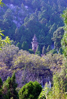 Construite pendant la dynastie Tang comme monument funéraire pour un moine, la pagode se dresse près de l'ancien emplacement du Temple Shentong à Nanshan.
