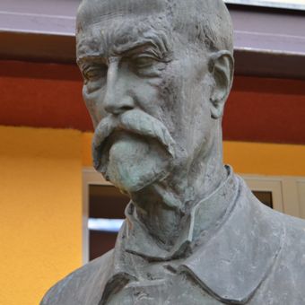 Bust of Tomáš Garrigue Masaryk, busta v Adamově před budovou školy na Komenského ulici