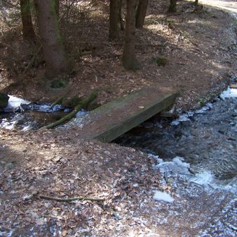 Most turistické stezky přes Stěžovský potok severozápadně od Drah