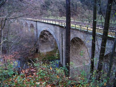 Propustek pod silnicí a železnicí v jižní části Andělské Hory