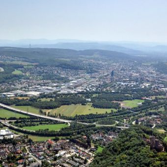 La ville de Lörrach s'étend sur 39 kilomètres carrés à l'intersection des frontières allemande, suisse et française, entourée de collines boisées.
