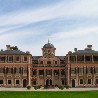Schloss Favorite est un pavillon de chasse baroque à Rastatt conçu pour les loisirs et les réceptions. Le bâtiment présente plusieurs ailes avec une terrasse plate au toit offrant des vues sur les vastes jardins qui l'entourent.