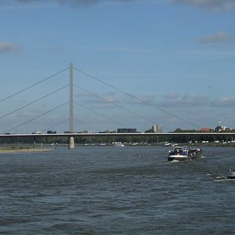 Le premier pont à cet emplacement a ouvert en 1898, reliant Düsseldorf à Oberkassel jusqu'à sa destruction par les forces allemandes en 1945.