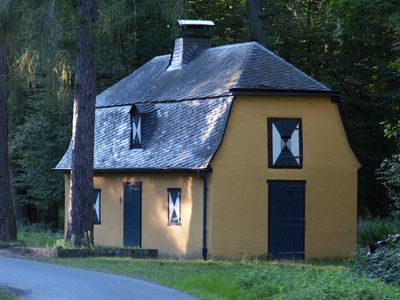 Le Jägerhäuschen se dresse dans la forêt de Kottenforst, présentant des éléments architecturaux allemands traditionnels avec des détails ornementés baroques.