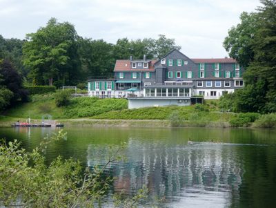 C'est une maison de maître situee dans la region du Bergisches Land, reconnaissable a sa facade equilibree et aux dispositions classiques de ses pieces. Le batiment preserve l'arrangement traditionnel avec les quartiers d'habitation dans la structure principale et les batiments de service repartis sur le terrain.