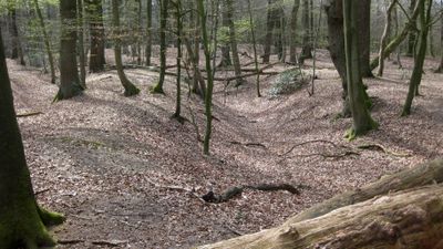 Les pierres de fondation de cette forteresse provenaient de carrieres locales le long du Weser et portent des marqueurs geologiques qui montrent clairement l'origine du materiau. Cet approvisionnement local etait typique pour les fortifications medievales et reduisait significativement les couts de transport.
