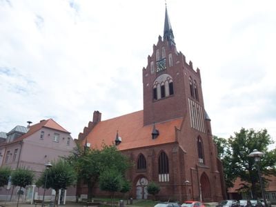 St. Marienkirche est une eglise construite en briques de style gothique, distinguee par ses hautes tours et ses motifs de maconnerie detailles. Le batiment affiche les caracteristiques typiques de l'architecture ecclesiastique medievale du nord de l'Europe.